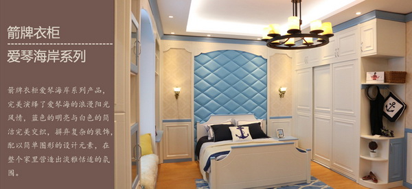 箭牌衣柜爱琴海岸系列产品,完美演绎了爱琴海的浪漫阳光风情,蓝色的明亮与白色的简洁完美交织,摒弃复杂的装饰,配以简单图形的设计元素,在整个家里营造出淡雅恬适的氛围。