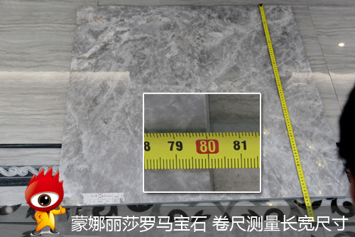 蒙娜丽莎瓷砖罗马宝石的规格是800×800mm,小编用尺子分别用卷尺测量了它的长和宽,对角线为1130mm,与其规格标准无误差。