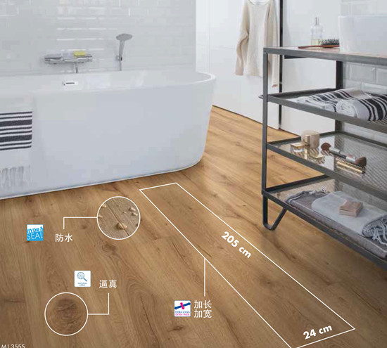 2. 独特的“HydroSeal”疏水涂层,让至尊系列成为迄今为止防水性能最好的强化复合地板。液体不会渗入木板缝隙,有效地防止了木板膨胀变形。