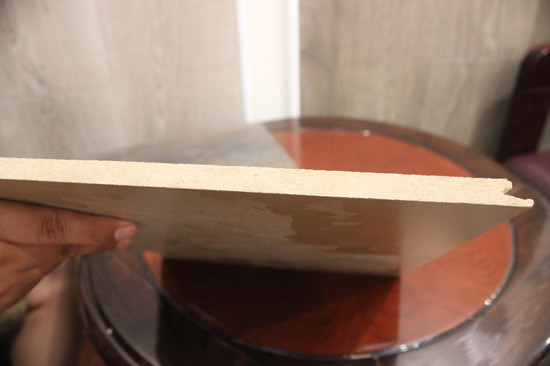 小编将水倒在两块地板拼接处,大约十分钟后,水的大小、形状不变,用抹布轻轻拭擦,地板上没有留下任何水分。导购介绍,强大的防水性能是至尊地板的又一大升级,该系列在一次高压成型的V 槽之上,加上了一道独特的“Hydroseal疏水涂层”,洒水后,水珠慢慢聚集在一起,丝毫不会从地板的接缝处渗入,这一技术还开创了复合木地板不需要密封或额外涂层即可防水的先河。