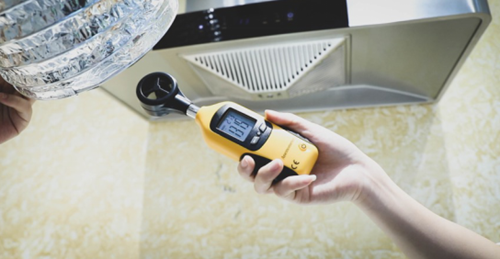 把E021烟机切换到最高风速,实测烟管出风口的风速达到了13.1m/s,相当于时速47.2km/h,或者是6级强风。按照标准软管的直径为0.17m,经过换算之后,E021的排风量为17.8m³/min。