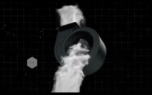 按照日常使用的顺序,我们先把E021烟机调到最大风力,然后打开水雾锅,可以看见蒸汽被吸向E021的方向,沿着拢烟腔内部的弧度,被吸进烟机内。