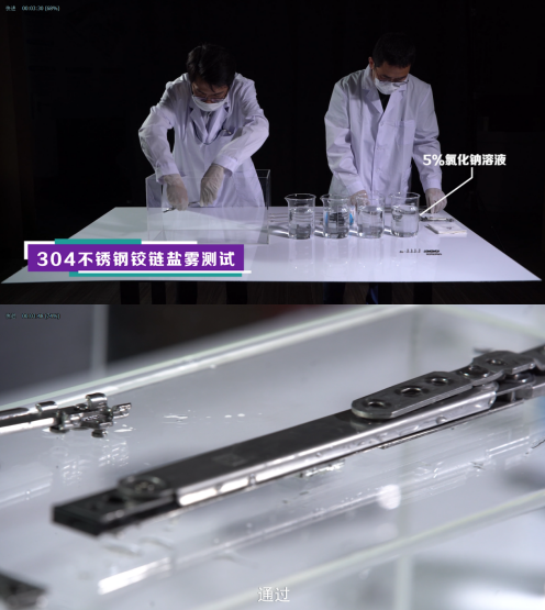 别看一块门窗就是正正方方的一个面,其实门窗的组成是有非常多的五金零件组成的,尤其在合页和螺丝等这些看起来毫不起眼的五金件,分分钟是造成安全问题的致命点,圣堡罗采用304不锈钢螺丝,避免生锈断裂,304不锈钢铰链坚固耐用,能承重80公斤,经过防锈性能测试,圣堡罗安全门窗五金件,通过!