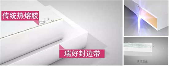 经过瑞好封边技术加工的板材,具有极强的防污防潮功能,不会像采用传统热熔胶的封边带一样, 在长时间的使用过后,发生开裂、变脏等情况,不仅清洁方便,也延长了柜体的使用“寿命”。