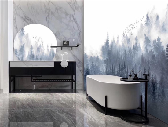 岩板是由天然原料经过1200℃以上高温烧制而成的高端石材,具有防水、防变形、防腐蚀、易清洁等优秀性能,用在潮湿的卫浴间可谓是所向披靡。