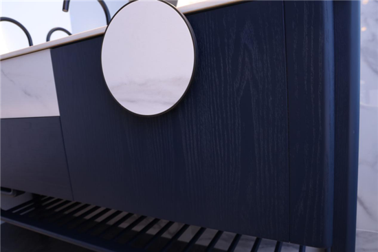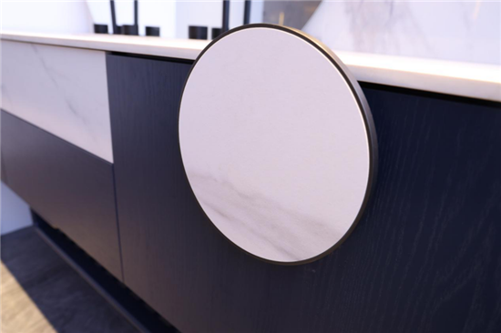 ▲岩板与实木交融的柜体面板