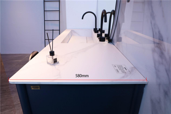 580mm的超宽台面,预留了充分的置物空间,日常的漱口杯、毛巾以及一些装饰物品都可以直接摆在上面,所有物品一目了然,日常洗漱也可以更加高效和快速。