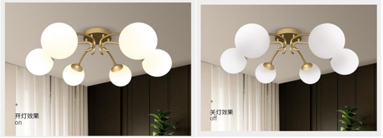 为了适应各种装修电线排布设计,这款吊灯还增加一个贴心细节——在吸顶盘预留了过线槽。即使电线预留位置与装灯位置不吻合,也一样可以走线,无缝吸顶安装。