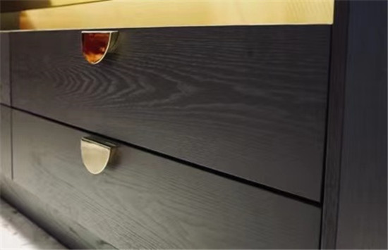 柜体采用的进口白蜡木原材经过了多种测试拣选,木质紧实。表面采用环保开放漆,保留天然木纹肌理。采用的环保漆均符合E1环保标准,防水防潮,安全更放心。