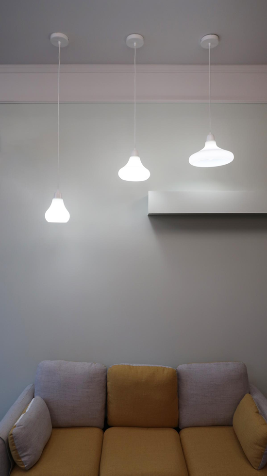 简约而不简单是宜美照明结合工艺与设计所呈现出的产品特性,简约造型特性也印证了风铃系列百搭性,拥有流畅线条的手工白玉灯罩材质将现代简约风格体现尽致。奶白白玉玻璃外部磨砂,内部雾面,双面不同打造,将光线均匀折射。半包款式设计相较于全包设计更注重空间使用感受,拥有更多光照,并且让光源呈现“轻重之分”,更加富有层次感。