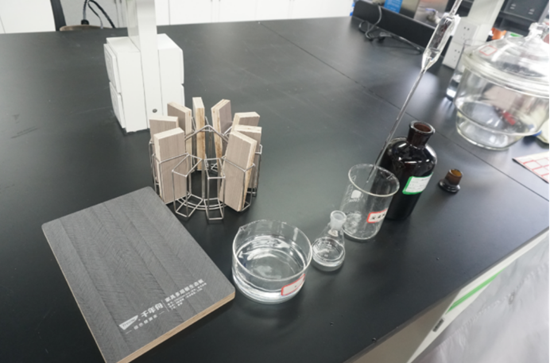 20度恒温避光保存1小时,用分光光度计测试,得出数据——,千年舟家具多层板符合企业检测标准。