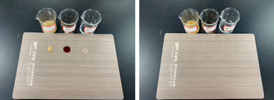 我们把生活中常见的调味料沙拉汁、酱油、白糖水倒在板材表面,静置10分钟后,用抹布擦拭污渍,板材可饰面污渍一擦即净,无颜色和液体残留。