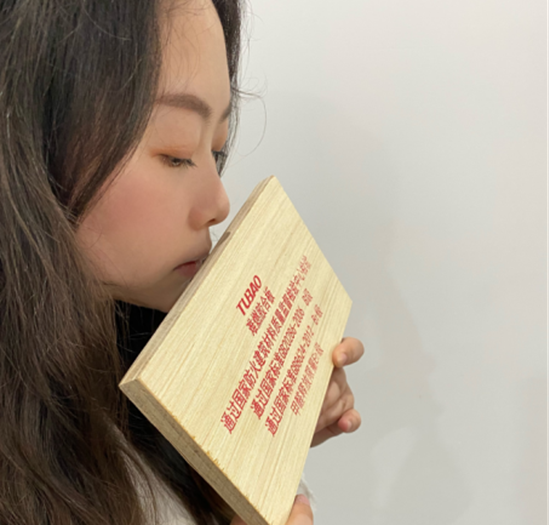 疫情使消费者居家时间越来越长,大家对室内空气环境的要求也越来越高,很多板材因材料使用问题,拆封时就会闻到很浓的异味,即使装修好后味道也经久不散。评测员将鼻子贴近刚拆封的兔宝宝难燃板,并没有闻到刺激性的气味。