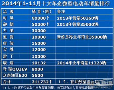 力驰:据力驰内部人员称,2014年1-11月份力驰电动汽车销量总计约在30000台左右。进入10月份以后月销能达到2000-3000台。2014年力驰在车型研发方面重点发力,相继推出了两款时尚车型,获得了良好的市场口碑。