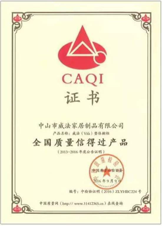 VIFA威法荣获“全国质量信得过产品”荣誉称号