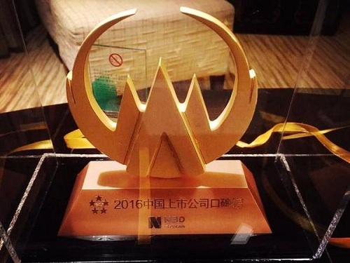 2016年度中国上市公司口碑榜按三大维度评选出了九大奖项,其中“最佳新技术先锋奖”以获评企业需具有“前瞻性地发明和使用新技术、新专利、新管理方式,切实提升企业生产效率以及经营业绩,并进一步反哺科技创新和制度创新”为特征。