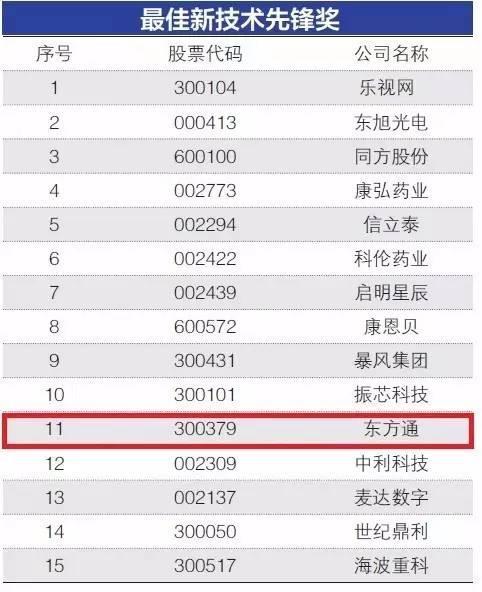 附:2016 第六届中国上市公司口碑榜“最佳新技术先锋奖”获奖榜单