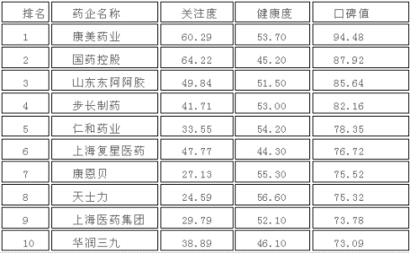 据悉,2016药企口碑榜是《2016年度医药行业发展报告》的重要组成部分,从关注度和口碑值两个维度进行年度数据统计,通过加权计算得出。从榜单上看,对单个企业而言,口碑的好坏可从网民提及该企业时观点的正负面、以及相关评价的传播广度加以判断。故健康度由涉企业正面、中性评价信息数占比加权计算所得,关注度由新闻、微博、微信等平台企业被提及数加权计算所得。