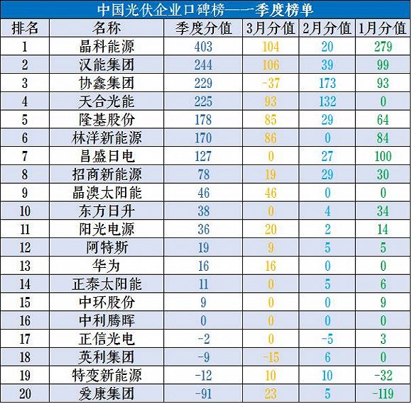 光伏企业口碑榜显示:首季高活跃度,预示今年竞争更为激烈