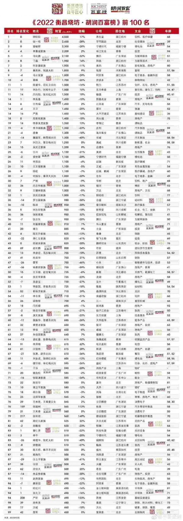 胡润研究院发布“胡润百富榜”:农夫山泉钟睒睒再成首富