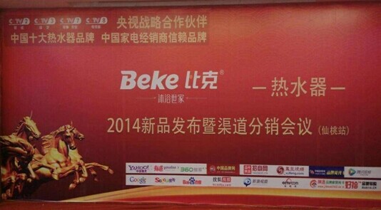 2014年6月30日,在周密的准备下,比克2014年新品发布会暨渠道分销会仙桃站红红火火地开展起来,总经理周卫红先生亲临现场进行比克产品的讲解,与经销商、消费者一起交流中国电热水器的市场格局和发展趋势,并介绍比克产品的技术、品质、设计方面的全方位优势,得到了众多经销商的高度评价。在这场分销会上,集齐了来自湖北各地的热水器以及其他家电经销商200人以上,全场掌声不断,订货会总计现场成交额220万元,交出了一份令人满意的答卷。
