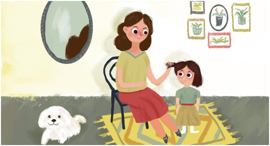 每每洗净头发且吹干后,都缠着您帮我扎好辫子,