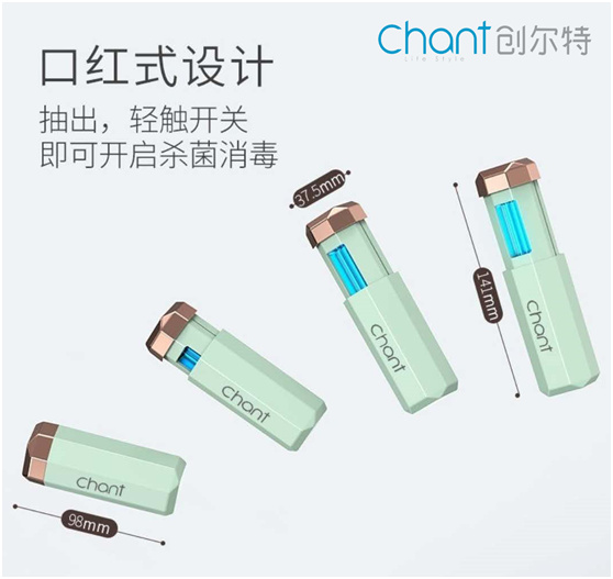 创尔特紫外线消毒棒身长98mm,迷你轻便的设计,随拿随走,轻松上街,把它放入包袋内,仿佛无物,轻松自在。