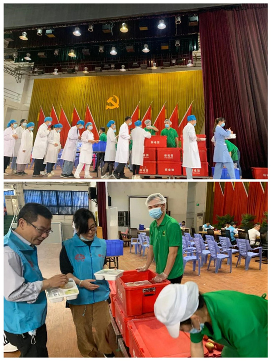 争分夺秒,力争最好。首先,我们将目光转向肇庆好味鲜配餐中心现场,负责分装的工作人员争取在最短的时间内,将热腾腾的饭菜打包装入保温箱,保证最佳的口感和味道,锁住营养不流失。整个过程有条有序,真正实现团餐整洁卫生、高效、营养美味。接着,负责配送的工作人员,马不停蹄地将饭菜送往各街道、地区的防疫点。