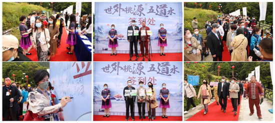 在一片热闹的氛围中,各位嘉宾一同上前进行剪彩,霎时礼炮齐鸣,人声鼎沸。至此,世外桃源五道水文化谷景区开园庆典正式启动。