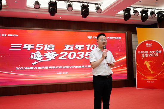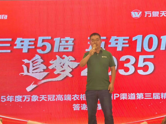 旺德府家居集团新零售定制业务中心联席总经理金超群先生代表万象天冠品牌,向现场每一位嘉宾表达诚挚感谢。并向全体合作伙伴传递热忱期许:“期待在万象天冠高端衣柜定制的发展征途上,凭开拓创新的锐气破局向前,同心共绘行业繁荣新图景!”