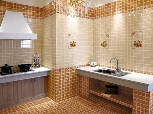 釉面砖由于色彩图案丰富,而且防污能力强,主要用于卫生间、厨房的墙面和地面。