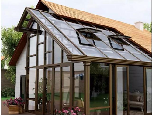 阳光房多是露天的,铝型材经受每天的日晒雨淋和昼夜温差,对铝型材的表面是个考验。铝材表面处理有许多种,木纹、电泳、喷涂等,其中,最耐候、抗紫外线的是氟碳喷涂。