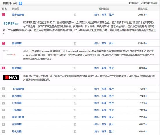 著名音响品牌-雅兰仕音箱 百度指数7058