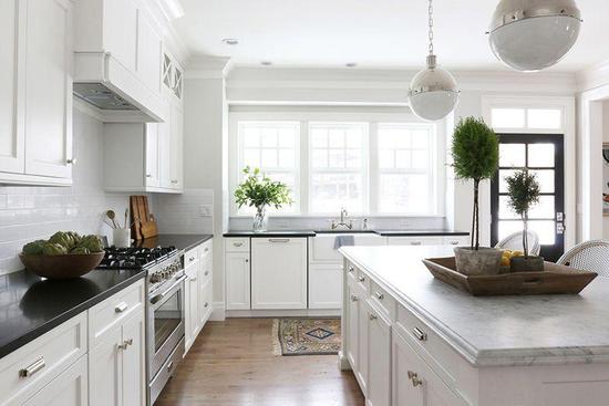 台面与橱柜经典的黑白配,不经美观还照顾到了清洁。