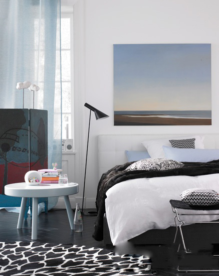 提篮造型的小边几,纤细的落地灯用扁平的反光板来取代大灯罩,高大的白色装饰花瓶,一个小小临时阅读区,没有过多的颜色,就足以让人惊艳了。