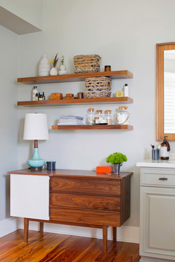 创造性的在卫生间里安置一把梯子,在满足美观时尚的同时,又能达到实用性的功效,这也算对传统卫浴设计的一种挑战。