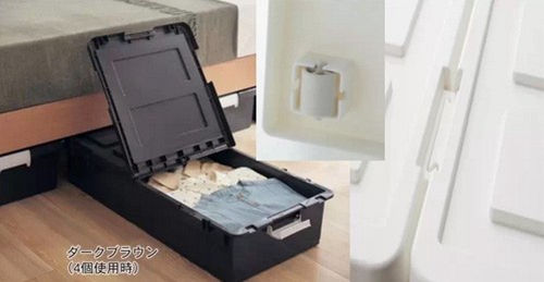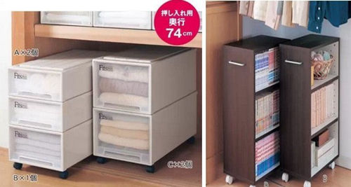 说完了衣架,还有一种超级变态的收纳盒,和一般日本家庭里面的一种”衣柜“size是配合设计的,其实是传统日式房间都会有的壁橱,分为上下两格,里面放被子什么的。就是机器猫睡觉的那种壁橱。