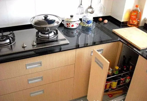 安装的台面最好不要选人造石,人造石表面易脆容易开裂,而石英石款式多,高硬度、防渗色强。台面高度在0.8m左右为宜,工作台面与吊柜底之间约需0.6m。吊柜的高度设置要便于常使用者的身高,门柄方便持握。