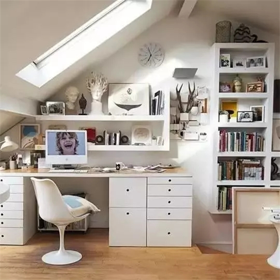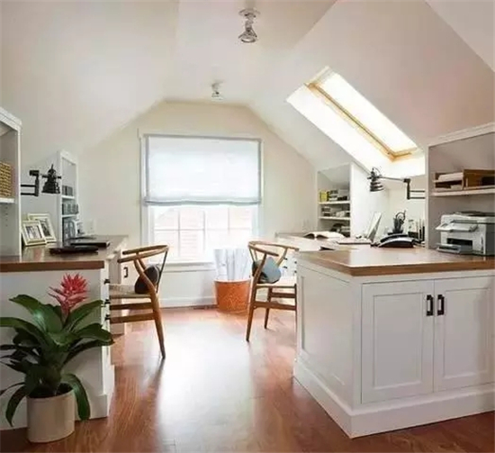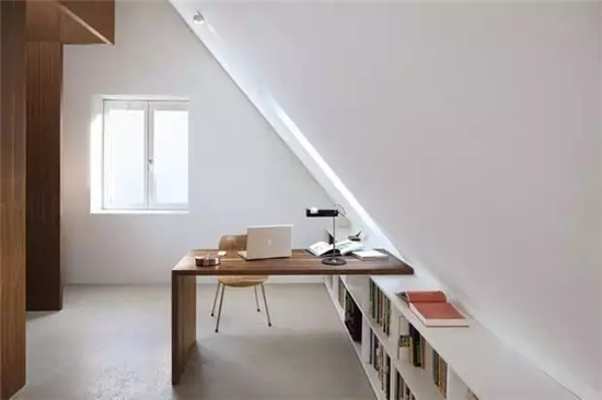 位置高,无遮挡的阁楼改成书房具备天然采光优势,阁楼开一扇窗,简单的一桌一椅也能让你舒适工作。