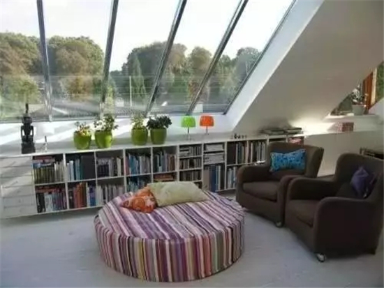 或者简单一点,铺张地毯,嵌入书架,一个人的空间安静无忧。