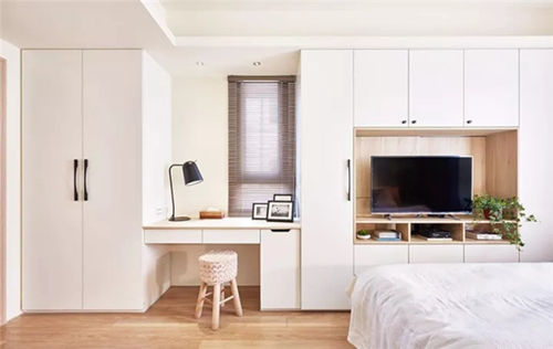 写字台是卧室内比较常见的,除了真的写字(比如儿童房给孩子写作业),比如用电脑需要,比如也可以当化妆台;柜子更是必不可少的需求,书柜、衣柜都是卧室需要的。