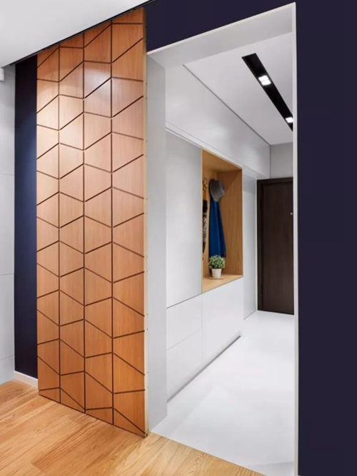而嵌入式玄关柜体就是说整个柜体都镶嵌在墙体里面,顶天立地的柜体设计空间占有感为0但是收纳功能却满分,"堪称隐形神器"