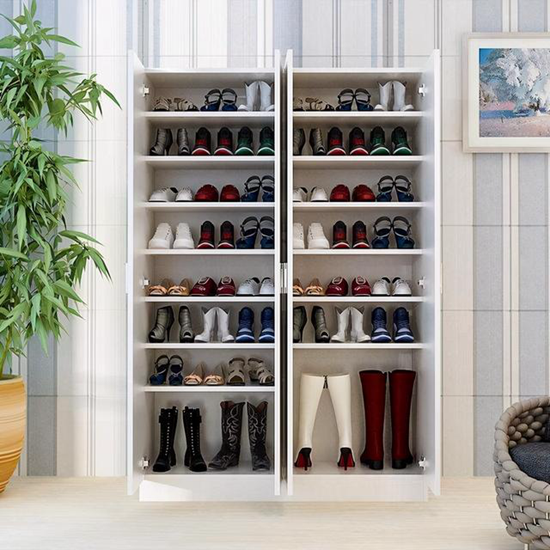 鞋柜内层板的高度,可调节了,意味着在夏天凉鞋偏多,可以把层板调低一点,多收纳几双,冬天,穿高帮的运动鞋、靴子多了,可以把层板拿掉一两个,让每格的高度增高。