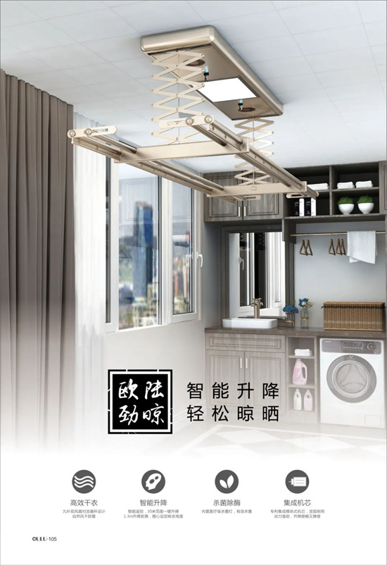 冬天衣物不易干,湿哒哒的很容易滋生细菌,也容易沾染细菌,欧陆美居集成晾衣机,内置医疗杀菌灯,能够高效挥发蛋白酶,消灭衣物上的残留细菌,搭配对流风干系统,杀菌+烘干,双管齐下,衣物速干不过夜。