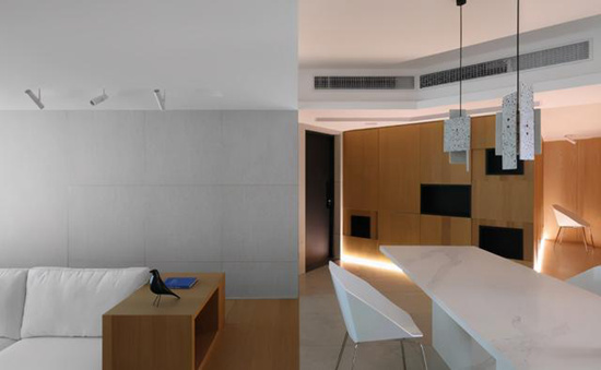 黑白配色其实已经逐渐被更多的设计师运用在实际的家居案例中,下面这个是位于广州老城区的跃层住宅,设计师重新规划了各种空间之间的关系,结合了密斯范德罗“少即是多”和“流动空间”的理念,阿尔托的人情化建筑思想,定下了极简黑白和自然木色的基调。