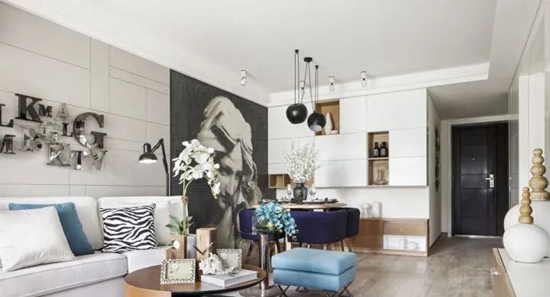 人的视觉范围有一个中心点,形成主次分明的层次感,就是布置上的重点,可以打破全局的单调感。如果客厅里选择了一盏装饰性很强的吊灯,就不要再添加太多的视觉中心了,否则就容易犯喧宾夺主的错误。