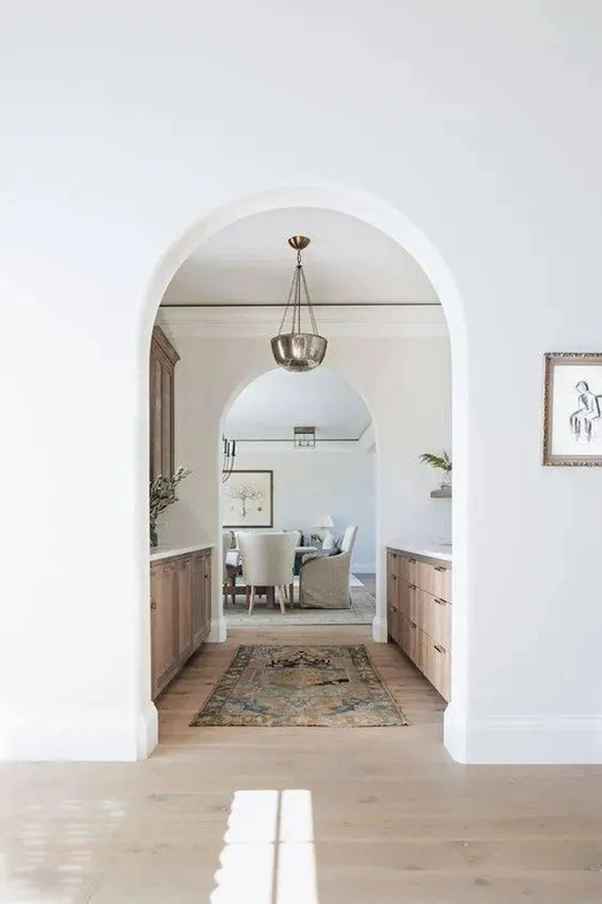 灯光设计是奶油风的灵魂。3000K-3500K的暖光,通过无主灯布局漫射开来,见光不见灯,让空间通透又不失温馨。弧形门洞、圆润边角的家具弱化了空间的棱角,也柔化了生活的边界。它特别适合小户型或年轻家庭,能在有限空间里放大明亮与松弛感。但需注意避免“全屋奶油”带来的单调,否则容易显得廉价或“塑料感”。