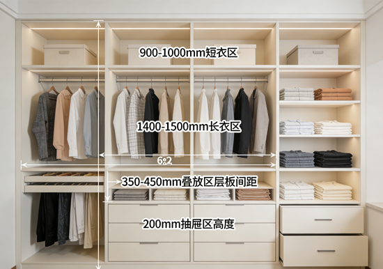 衣柜内部格局设计的黄金公式:挂衣区、叠放区、抽屉的最佳比例是多少?