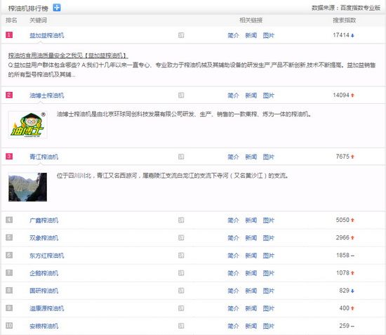 良品乐购是汇集中国著名企业品牌口碑的官方网站,为用户提供企业品牌口碑,中国企业品牌口碑的最新资讯,让您及时了解中国企业品牌口碑,著名企业口碑品牌的最新信息,良品乐购是最新企业品牌口碑的展示平台。欢迎转载分享本文“2015年8月十大榨油机品牌搜索指数排行榜”,转载时请保留文章版权来源网址:http://www.hao-koubei.com/html/zyjhz_15695222.html