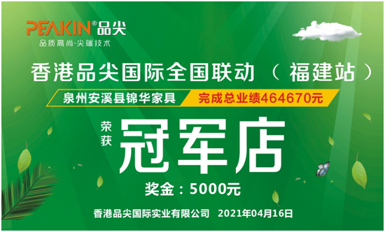 最强王者,闪亮登场!泉州安溪县锦华家具最终以464670元的最佳成绩赢得“冠军店”桂冠,将5000元豪华现金大奖收入囊中!